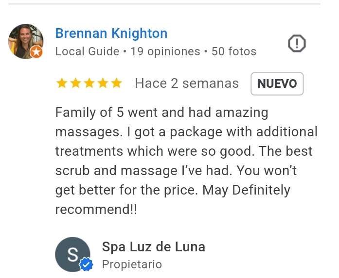 Hands down the BEST massage I’ve had in years, even in the US states. There was no waiting – my husband and I showed up, picked from the massage menu and we were on the table in minutes. The masseuse’ had excellent technique, working out all the lumps and bumps from our whitewater rafting trip the day before. I am really picky and get massages often – for me to recommend so highly is rare. The cost was so reasonable compared to what we pay at home AND compared to what we just paid two days prior for massages at our Airbnb (whose massages were just not good). Thank you Spa Luz de Luna for ensuring we didn’t leave Costa Rica without a top notch massage. We’ll be back!